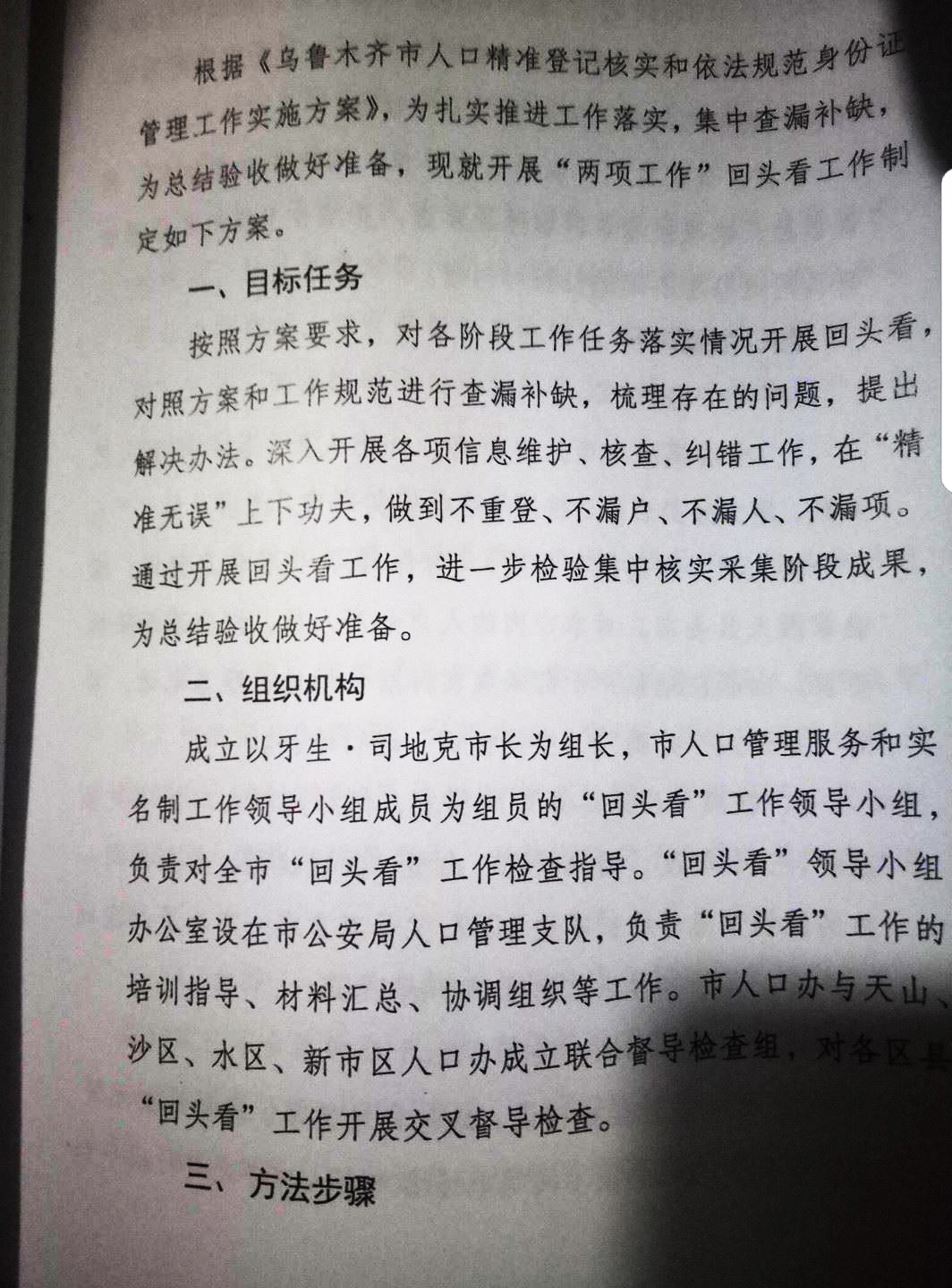 In addition, the government appointed the mayor of Urumqi as the director of the new “Retrospection Leadership Group” empowering him to monitor the progress of the operation. He would be responsible for “obtaining the precise information” and monitoring the registered personnel.