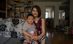 | Li Wenzu, 31, wife of imprisoned lawyer Wang Quanzhang poses for a portrait with their son Wang Guangwei, 3. Photograph: Adam Dean for the Guardian |