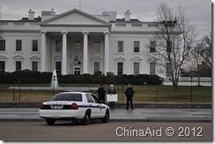 (Washington, D.C.—Feb. 14, 2012) An American human rights activist and director of a rights advocacy group at a leading Washington, D.C. think tank was arrested Tuesday morning for protesting outside the White House where President Obama and his administration were meeting with Chinese leader Xi Jinping.