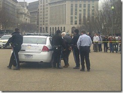 Michael J. Horowitz, senior fellow at the Hudson Institute, was outside the White House at 8:45 a.m. with a sign calling for the release of six Chinese prisoners of conscience. Less than a half-hour later, he was arrested, handcuffed and taken to a local police station, where he was briefly held and fingerprinted before being released.