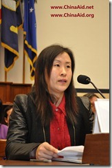 (Washington, D.C.—Feb. 15, 2012) On the same day that President Obama was meeting in the White House with the presumptive next president of China, the wife of an imprisoned Chinese dissident was on Capitol Hill testifying at a Congressional hearing about the government repression she and her family have suffered.