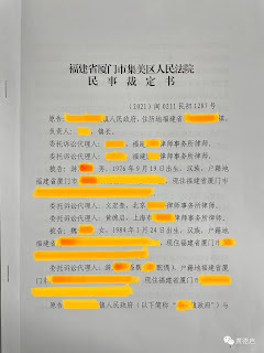Jimei District People’s Court verdict, first page.