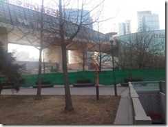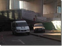 At the reception desk on the third floor of the Xin Dong Fang building, there is a big glass door leading to the plaza, but the employees said that the one day that access through the door is not permitted is Sundays. We tried walking out to the plaza but were stopped by police lurking at the reception desk and questioned. During the questioning, we suddenly discovered that the man with the camera in the plaza had followed us to the reception center and was now standing nearby looking at us warily. We were not just very surprised to see him, we were stunned, never thinking that we had inadvertently become the targets of a tail. Seeing our surprise, the man in red walked away without a word. After he left, another man, wearing a black jacket, joined those sitting on chairs on either side of the glass doors. His eyes never left us until we left the reception desk area.
