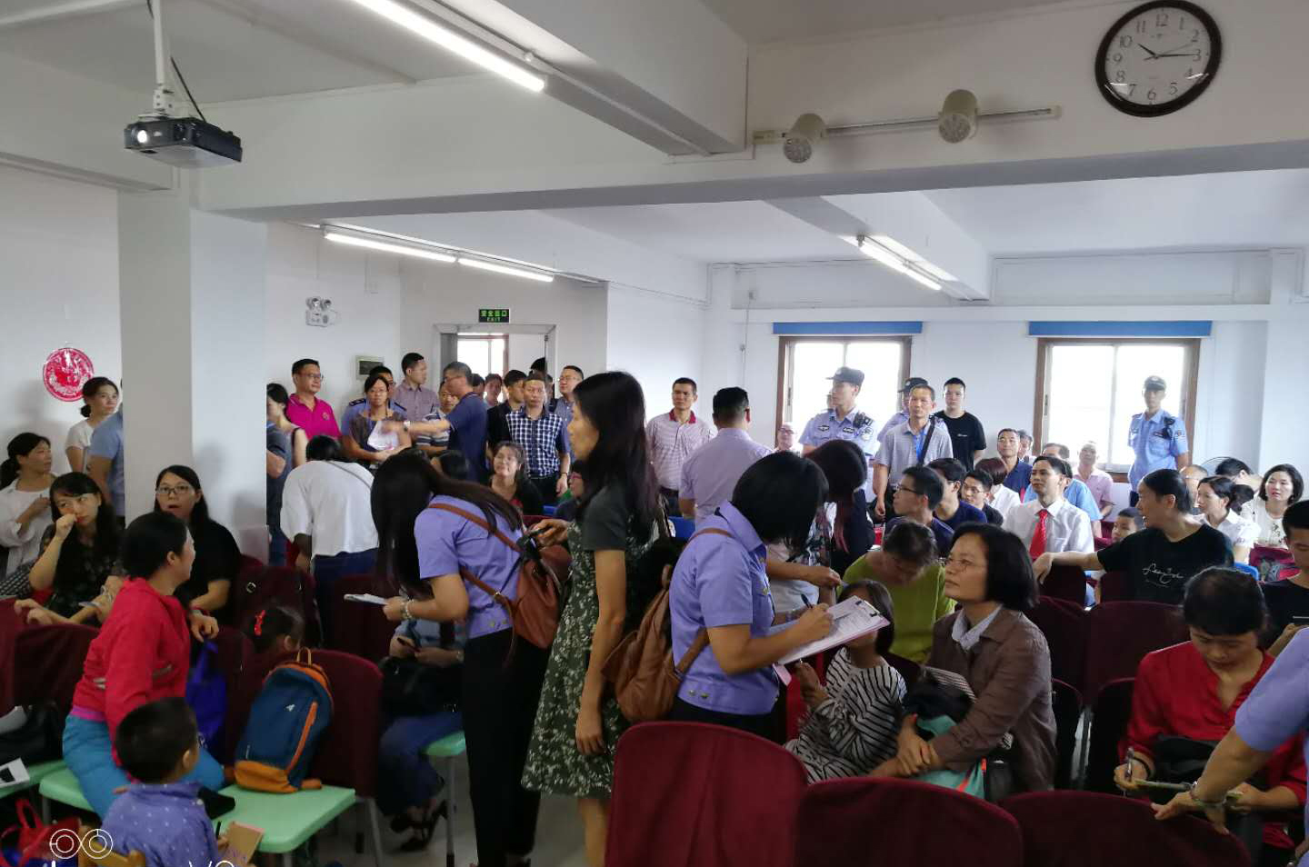 | Uniformed officials take down personal information from Christians attending Bible Reformed Church in Guangzhou on July 15, 2018. (Photo: ChinaAid) |